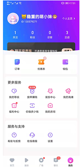 快速下单+预约大神+多人聊天室+动态相册+邀请赚钱+广告位